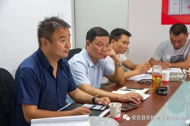 2017年7月10日,安吉縣農村物業管理協會年中理事會擴大會議順利召開。本次會議邀請了縣農辦長效辦主任喻凱及今典物業、潔寶物業負責人和協會財務人員共同參與。